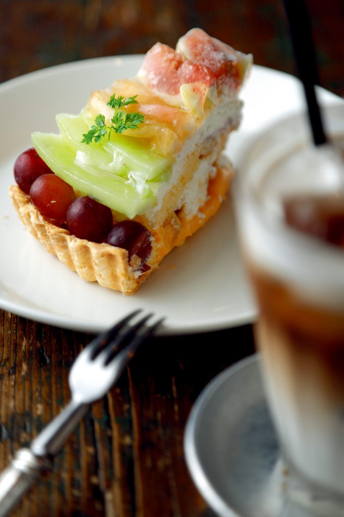 地養卵の手作りカスタードを使った「季節のフルーツタルト」(700円)。その時季の旬のフルーツがたっぷり