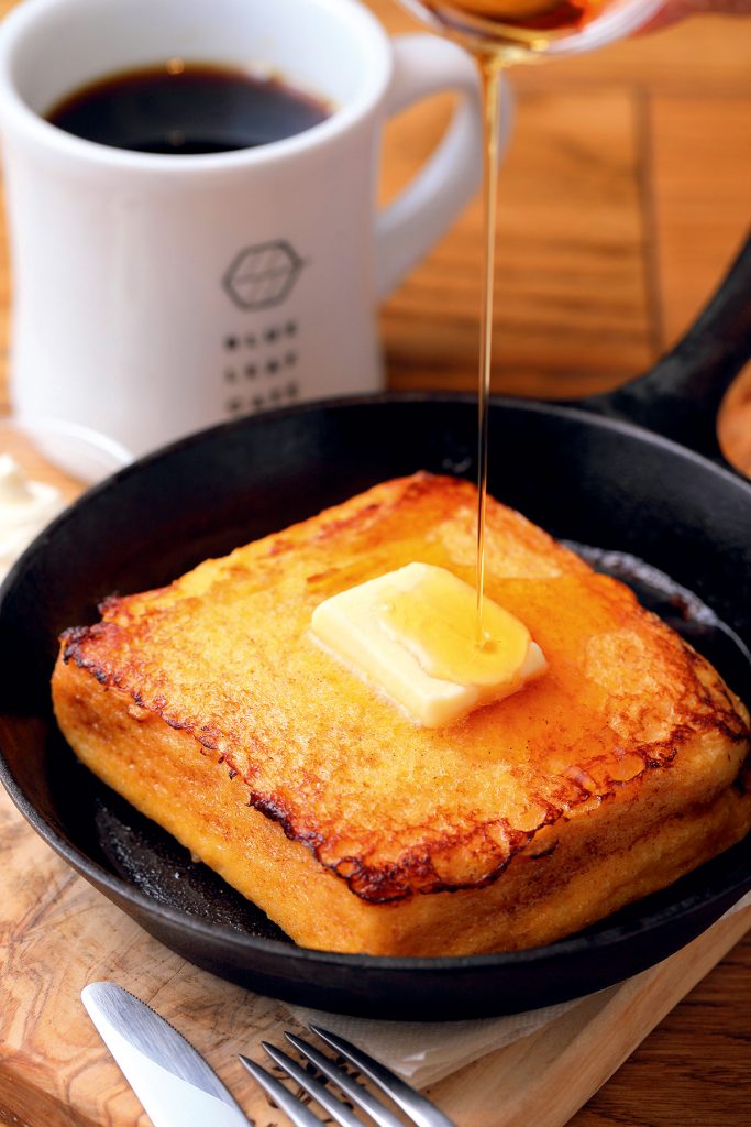 シナモン香るアパレイユでもっちり仕上げた「フレンチトースト」(648円)は、「ブレンドコーヒー」(M・346円、L・399円)と共に