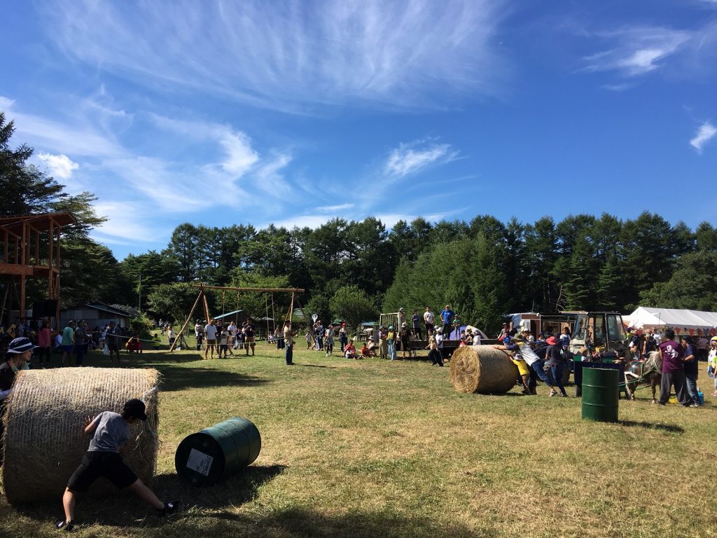 どうですかこの緑と青空。これで気持ちが良くないわけがありません。朝10時のオープンと同時にみんなが好きな場所に好きなようにテントを設営開始。おしゃれなサイトをチラ見しながら歩くだけでもう楽しいです。農場のあちこちには、ハイジが乗っているような大きな木のブランコがいくつも作られていたり、トラクターが引くトラックの荷台に乗って会場内を1周できたり、染め物体験をしたり、でっかい牧草ロールによじ登ったり転がしたりとイベントも盛りだくさん。家族みんなで遊べます。場所は岩手県の八幡平ですが、農場がある場所の標高はそんなに高くないので、朝晩の冷え込みはフリースか薄手のダウンがあれば問題なしでした。