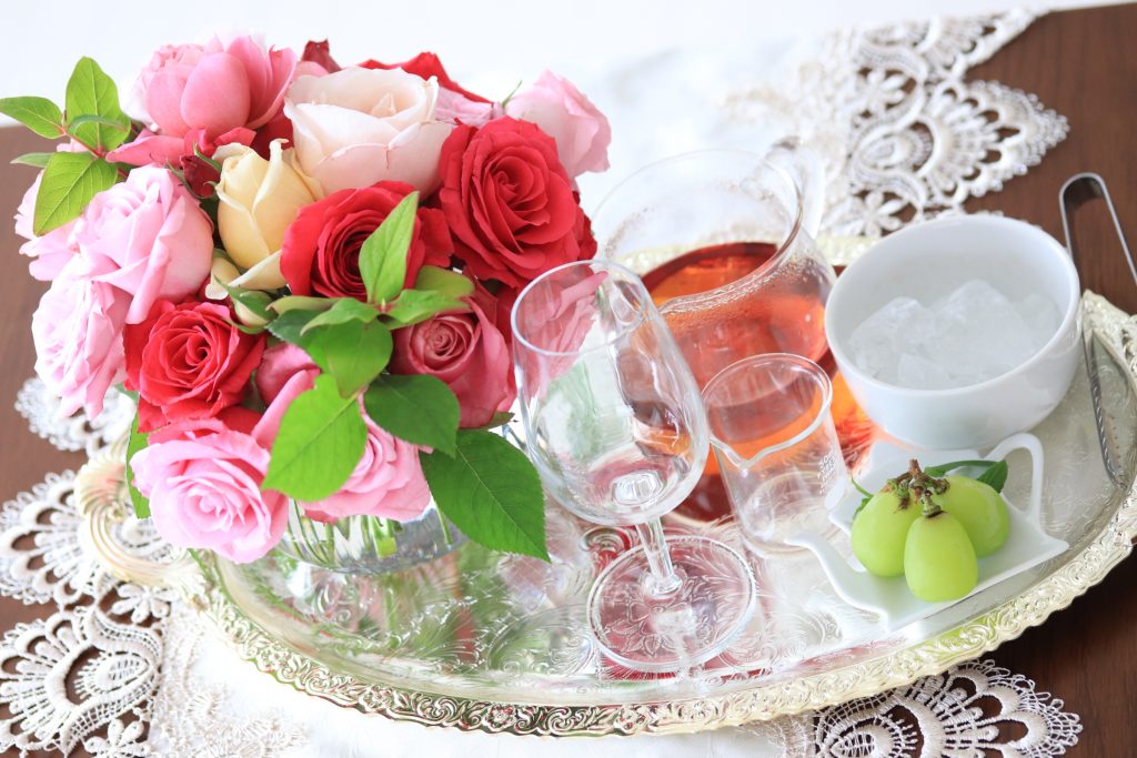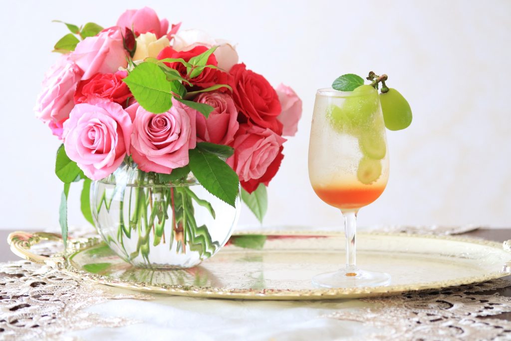 グラスはコロンとまあるいものや、背の高いものなど、お気に入りを使いましょう