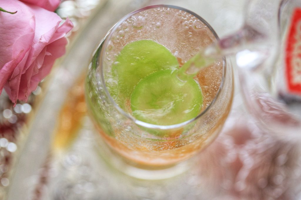 ④グラスの淵まで炭酸水を注ぐ