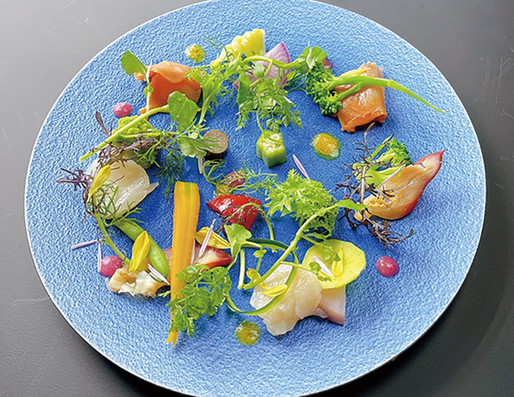 旬のたら菊酢(980円)は料理長が趣向を凝らした盛り付けと贅沢な味わいが堪能できる逸品