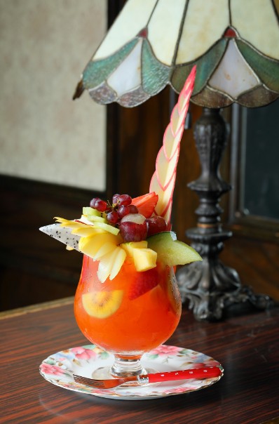 爽やかな味わいの紅茶と合わせ、たくさんの果物を盛り合わせた看板メニューの「ティーパンチ」(630円)