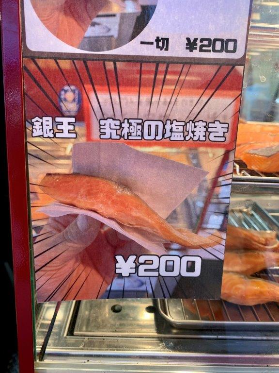 なかでも気になるのが「銀王 究極の塩焼き」(200円)。こちらは、ブランド銀鮭「銀王」を低温でじっくりと焼き上げた自慢の塩焼きです。