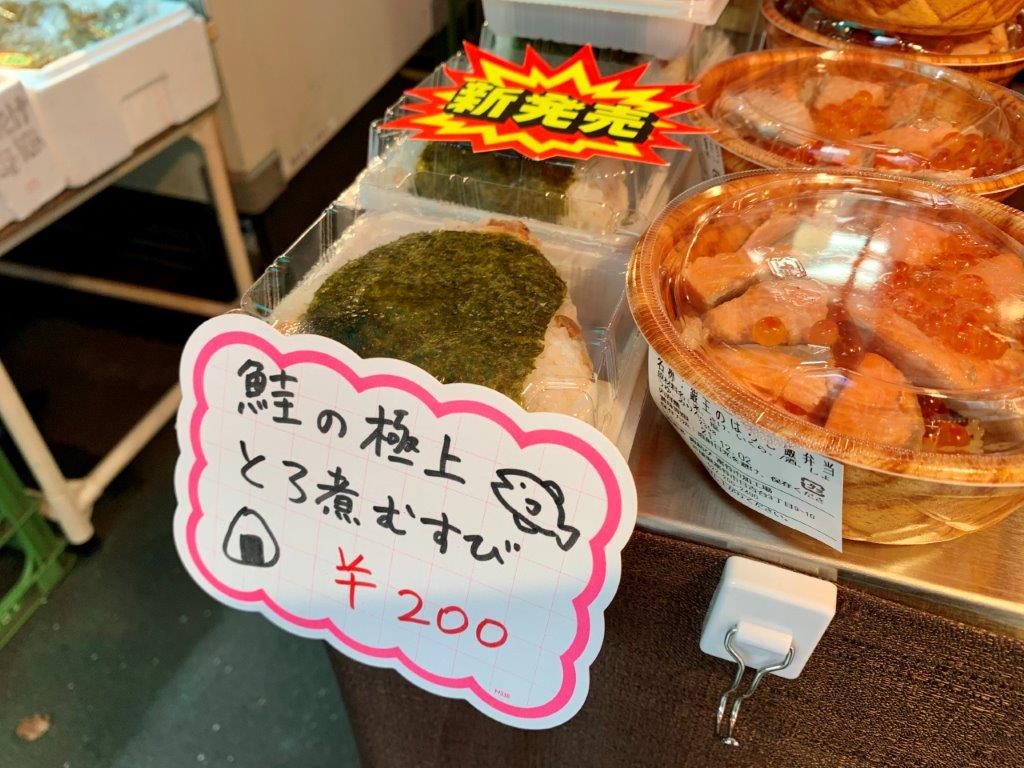 この日はお店の方激推しの「銀王の鮭弁当」(500円)と「鮭の極上とろ煮むすび」(200円)を購入しました。