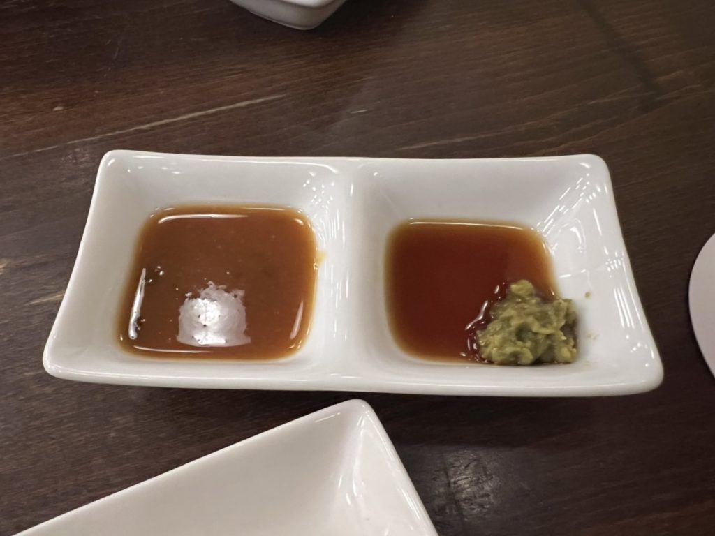 タレは「梅しお」「柚子胡椒」「味噌ダレ」の3種類から2つセレクトします。私は柚子胡椒と味噌ダレで楽しみました