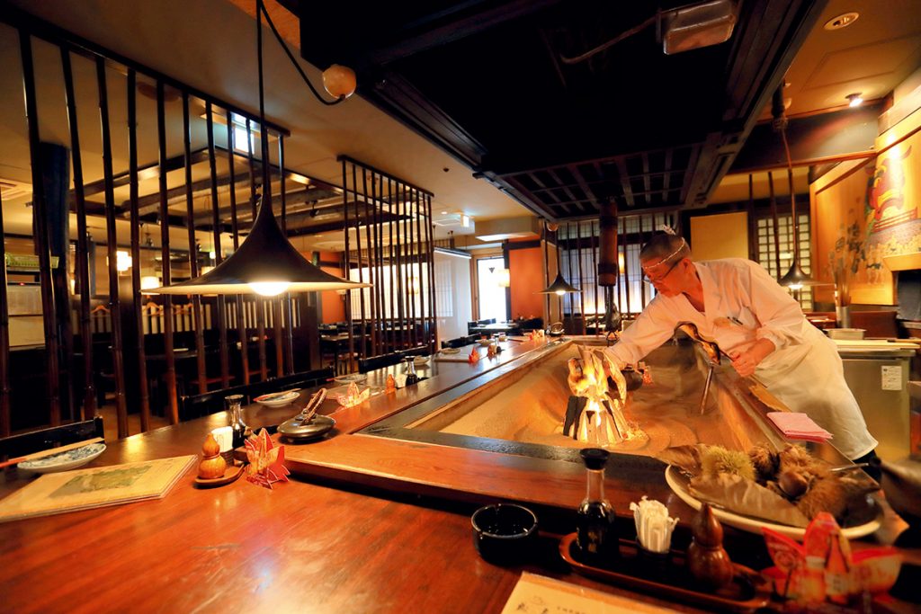 • カウンター席では間近でいろり焼きを眺められ、迫力満点!