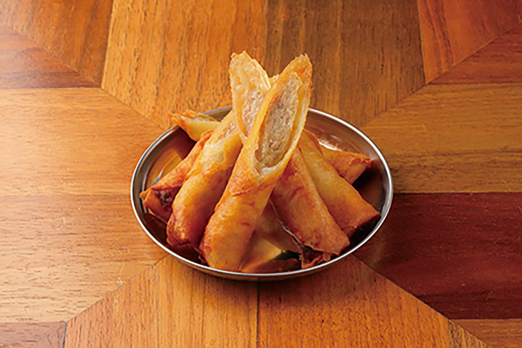 スナック感覚で楽しめるスティック状の揚げ焼売。ビールのお供にもってこいの一品です