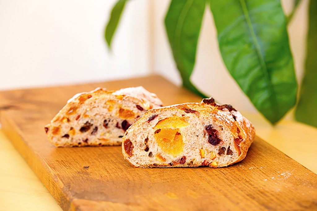 ドライフルーツやオレンジピールがぎっしり入った「フルーツカンパーニュ」(280円)