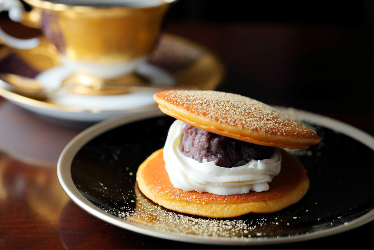 7月から登場した「ホシヤマふわどら」(540円)。みりんとハチミツで甘みを醸した生地と、店内で炊き上げたあんこ、生クリームときな粉で贅沢な味わい