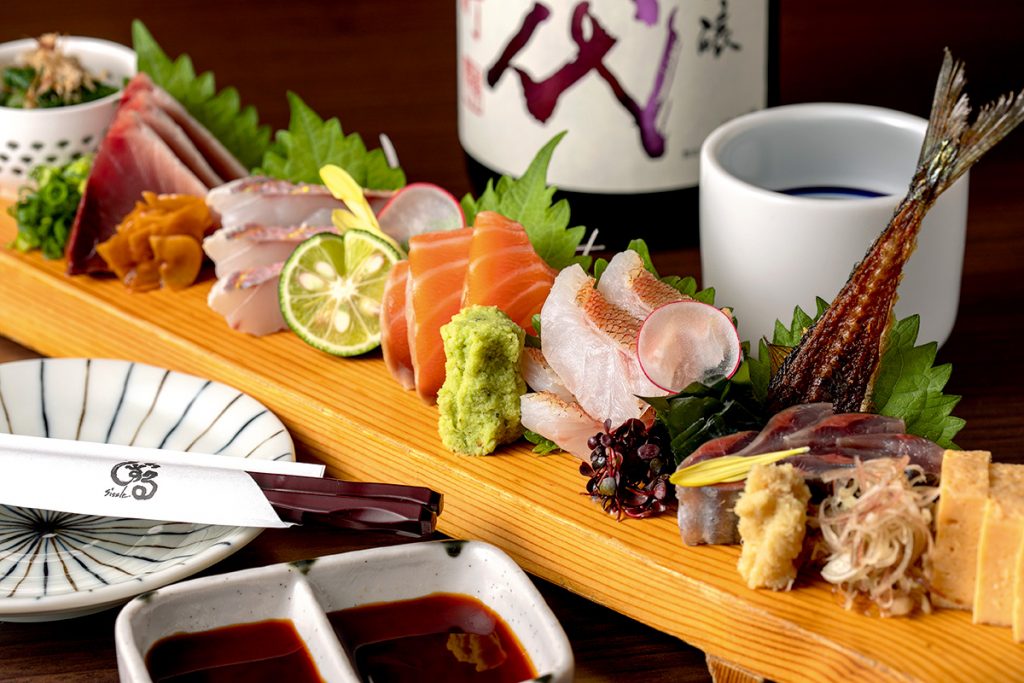 モットーは店名の通り“シズル感”のある料理をリーズナブルに提供すること。どの料理にも、和食店で経験を積んだ料理人の技が光ります。そんな逸品を自宅でもリーズナブルに楽しめるのが「あて盛り」(2,160円)です。アナゴ飯やカキフライ、ブリの照り焼き、エビ天など9種のアテが詰め合わせに。ビールや日本酒を片手にじっくり楽しみたいですね。イートインなら、名物の刺身は見逃せませんよ。ぶ厚く切り分ける太っ腹ぶりが好評です。