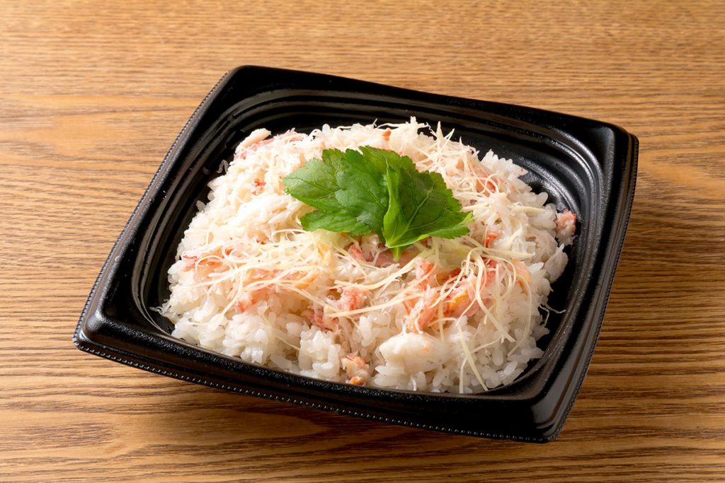• 「ズワイガニ炊き込みご飯」には、カニのほぐし身がたっぷり