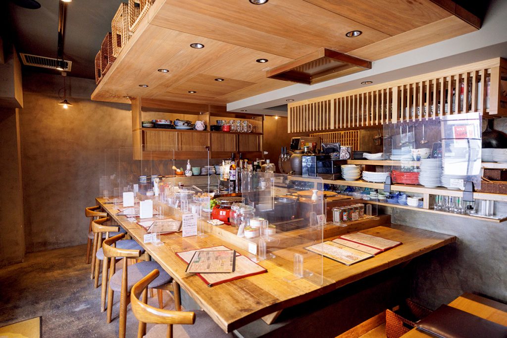1階にはカウンターやテーブル席、2階には掘りごたつ席があり、さまざまなスタイルで楽しめる