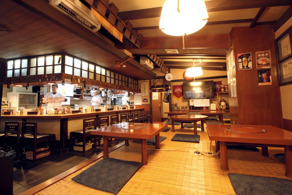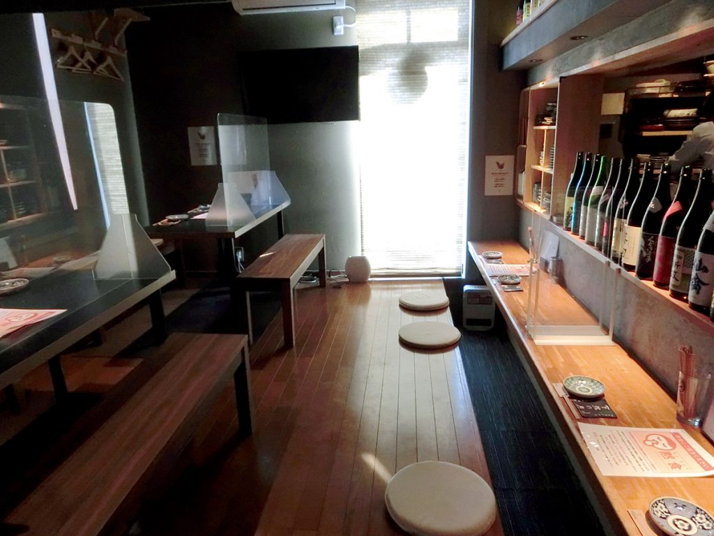 焼鳥職人の技を目の前で見られるカウンター席のほか、テーブル席もあります