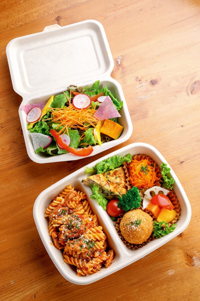 前菜3品、メインディッシュ、パスタorリゾット、サラダが入った「オーガニックランチBox」(1,200円)※テイクアウト限定メニュー