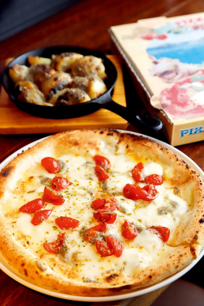 「ナポリピッツァと100円ワイン」を掲げる、横丁の小さなピッツェリアです。独自配合の生地にはモッツァレラがたっぷりのせられています。電熱窯で焼くこと3分。サクっともっちりな焼き上がりが自慢です。オーナーが石巻に漁船を持っているので、地元の魚介がメニューに登場することも。種類豊富なピッツァとともに、サラダやローストポテト、お肉のグリルなどの一品料理もテイクアウトできますよ。