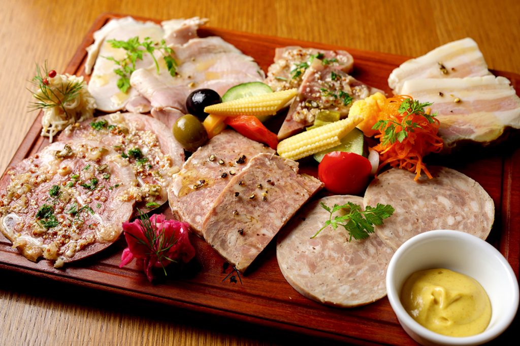 自家製のシャルキュトリーが楽しめる、フレンチビストロです。厳選したスパイス使いとシンプルな調理法で、素材の良さを活かしています。おすすめは、20種類以上あるメニューの中から、シェフがセレクトする盛り合わせ。定番のパテやハムはもちろん、ちょっと珍しいメニューも。豚頭と舌、頬肉で作るミュゾーや、豚肉のゼリー寄せのプレスコなどもあり、シャルキュトリーの奥深さと、シェフの技術を存分に堪能できますよ。