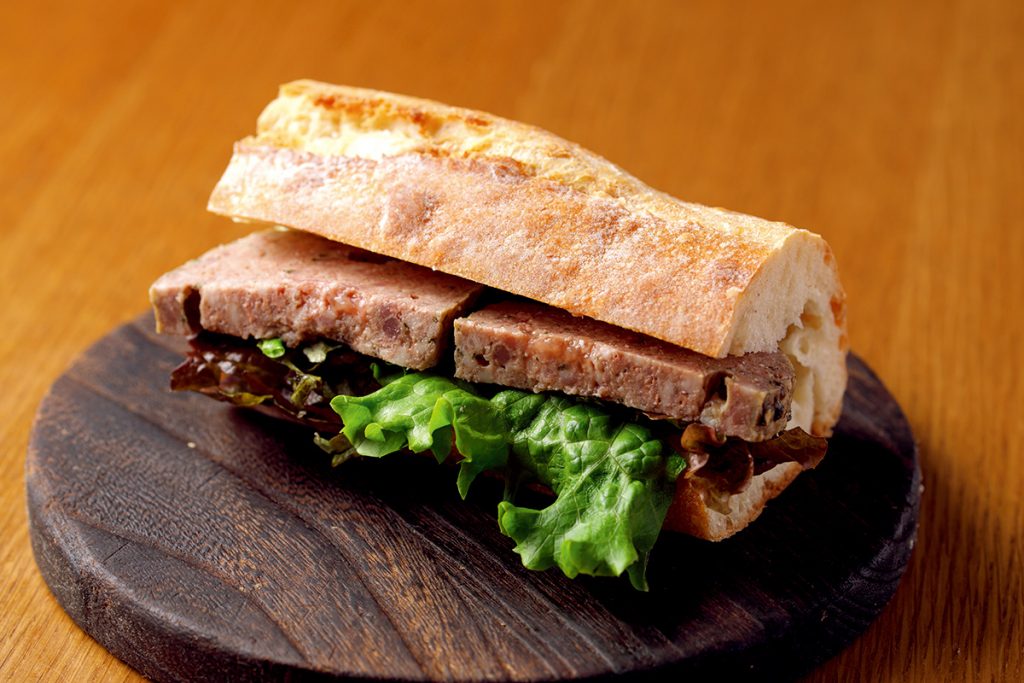 テイクアウト限定メニュー「バゲットサンド 鶏レバーのパテ」(600円)