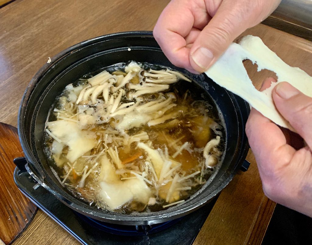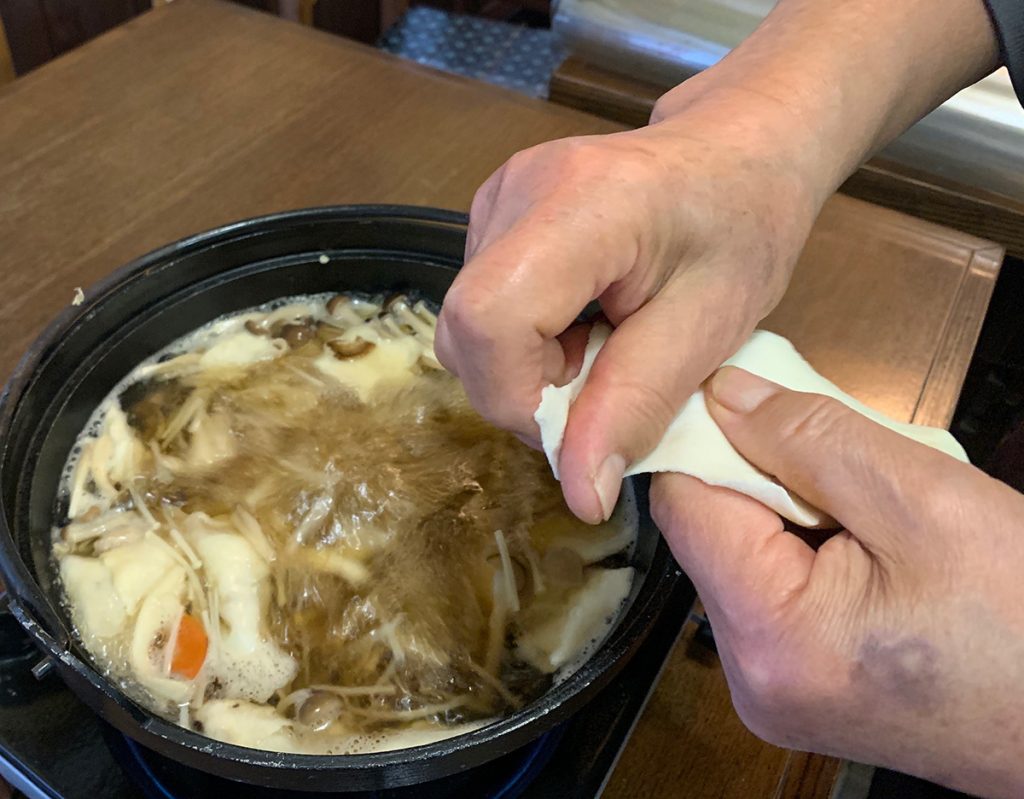 そして最後に、耳たぶ程度の柔らかさに練り上げた自慢の「はっと」を茹で上げていくのが作り方。