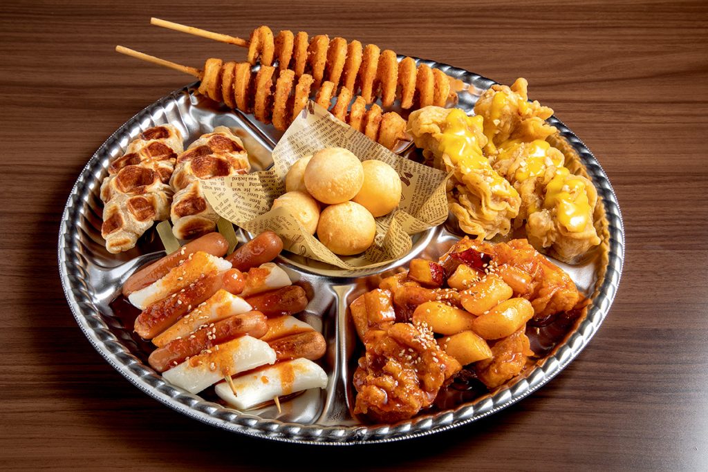 タッカンジョン(ヤンニョム)、ソトクソク、ハニーマスタードチキン、ぐるぐるポテト、チーズボール、クロッフル