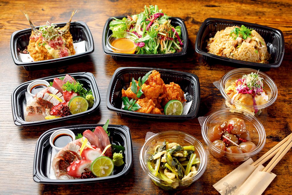 カジュアルかつ上品な雰囲気のネオ酒場『おかげさん』。『東北大学病院』からほど近い木町に店を構えています。地鶏や赤鶏を使った焼鳥と旬魚の刺身、多彩な惣菜が店の自慢です。「5,000円セット」は、店で楽しめるコース料理をそのままテイクアウト仕様に。季節の食材を使った惣菜や、朝に仕入れる刺身など、店の味をそのまま自宅で楽しめますよ。店主が大好きだった、今はなき『勝山飯店』の味を再現した炒飯も入っています。
