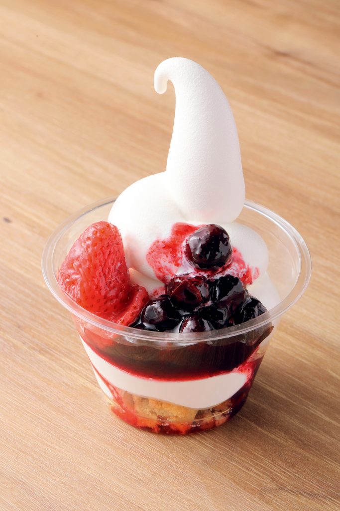 「いちごパフェ」(1,000円)。ミルクソフトの下には、自家製のチーズテリーヌが。こだわりがたっぷり詰まった一品です
