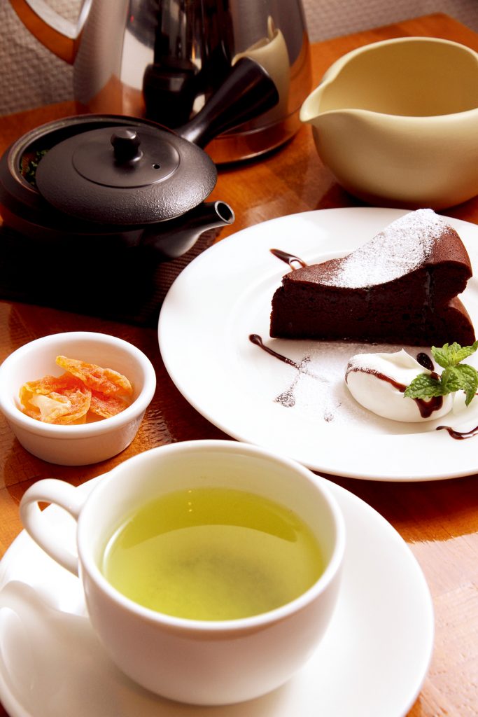 定番人気の「ガトーショコラ」(550円)と「さえみどり(煎茶)」(500円)