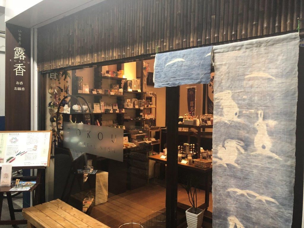 お店があるのは、ジャズフェスの会場からもアクセスしやすい東一市場。その一角にお香専門店『仙台香房 露香』があります。こじんまりとした店内には、癒しの香り漂う素敵な空間が広がっていますよ。