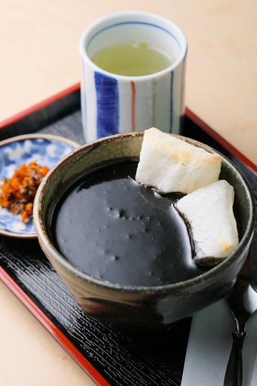 「胡麻ぜんざい」(550円)。とろりと濃厚な胡麻餡をたっぷりと餅に絡めていただこう