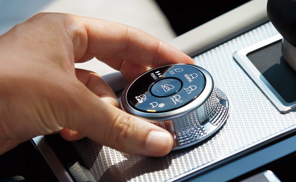 新型『アウトランダー PHEV』のセンターコンソールに設置されたダイヤルを回せば、7つのドライブモードを直感的に設定可能。