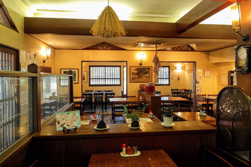 穏やかな照明が心地よい店内。配された家具は手入れが行き届き、昔から大事に使われてきたことがわかります