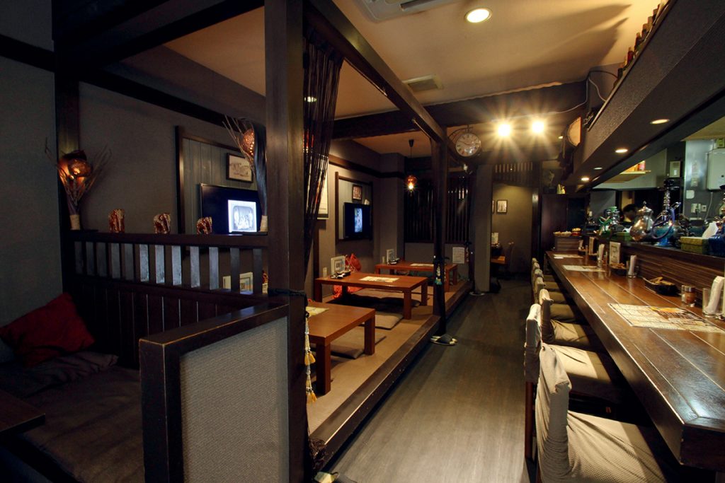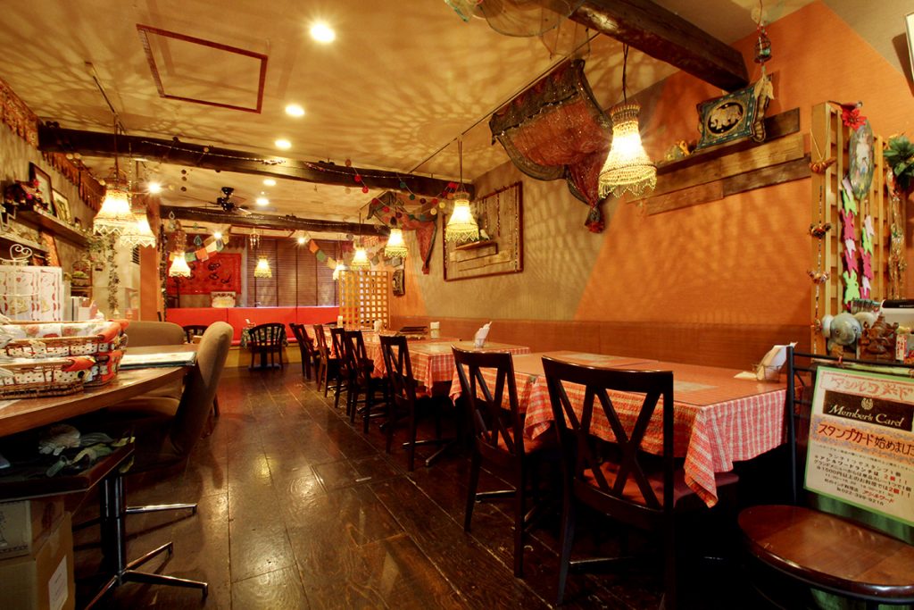 エキゾチックな雰囲気が漂う店内。テーブル席、カウンター席、座敷席があります
