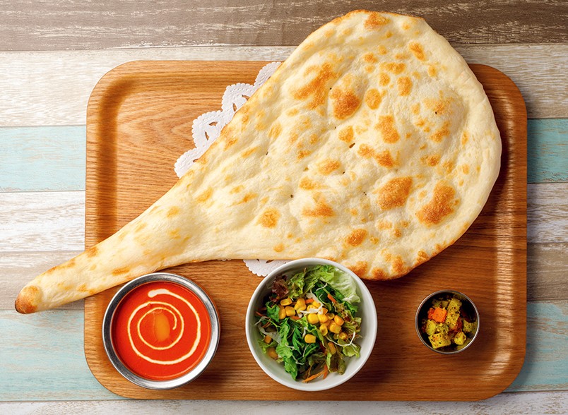 32種類のスパイスをブレンドし、日本人好みに仕上げたカレーが人気。まろやかな味わいの中にコク深い旨みがじわりと広がり、食べ進める手が止まらなくなること請け合いですよ。ビッグサイズのナンはプレーンのほか、「チーズナン」や「クリームチーズナン」、「はちみつナン」などもラインナップ。好みの組み合わせを探してみてくださいね。