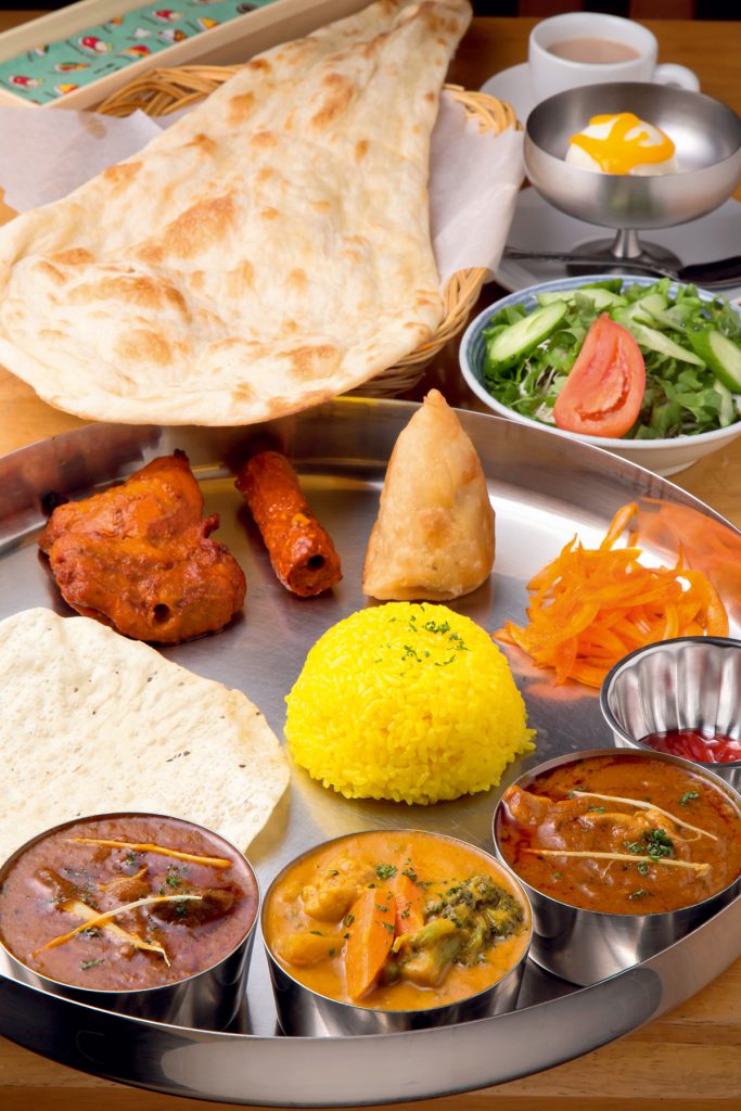 シェフの地元・北インドの味が楽しめるお店です。「シンドール タリー」のメインのカレーは「チキン」「ベジタブル」「マトン」の3種類。店自慢のナンはもちろん、チキンティッカやシークカバブ、サモサなどの惣菜やデザートまで盛り込んだ満腹&満足間違いなしの内容ですよ。本場の味をフルコースで堪能できるひと皿です。