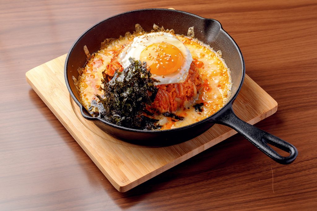 人気焼き肉店『ハルバン』の居酒屋形態の店。熱くて辛くて旨い韓国料理がランチでも楽しめます。中でも注目は、あつあつのままサーブされる「チーズキムチチャーハン」(990円)。別名「マグマチャーハン」とも言われる熱&辛メニューです。鉄板の上でグツグツと踊るチーズは、チャーハンに混ぜてもよし、少し待ってカリカリ食感を楽しむもよし。自分好みにアレンジして楽しめますよ。