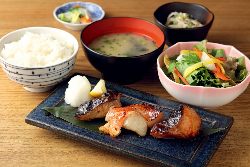 「銀たら定食」(1,300円)※銀たら焼き、ご飯(大盛り+50円)、味噌汁、漬物