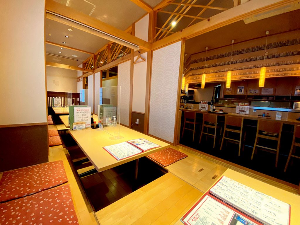 掘りごたつ、座敷席、テーブル席、カウンター席を用意。お祝いでの利用も多いです
