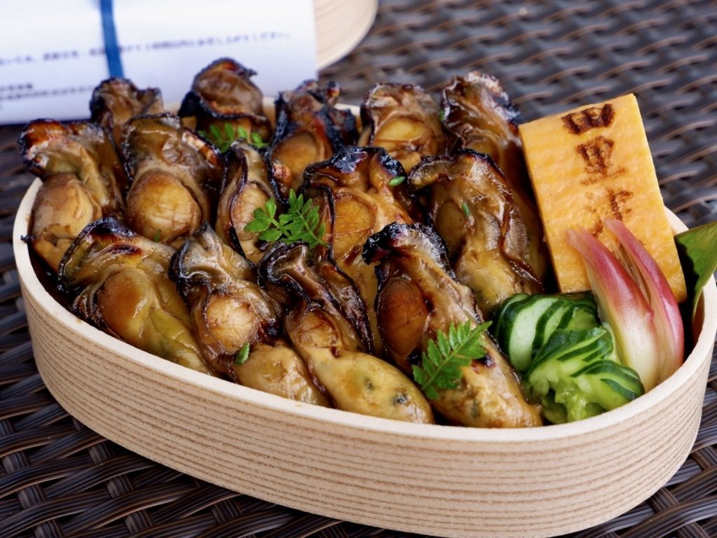 「ぷっくりかきめし重(秘伝タレ味)」(3,500円)。圧巻の牡蠣づくし!