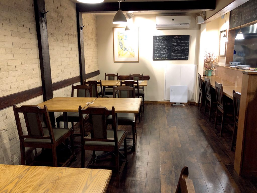テーブル席とカウンターのある落ち着いた雰囲気の店内