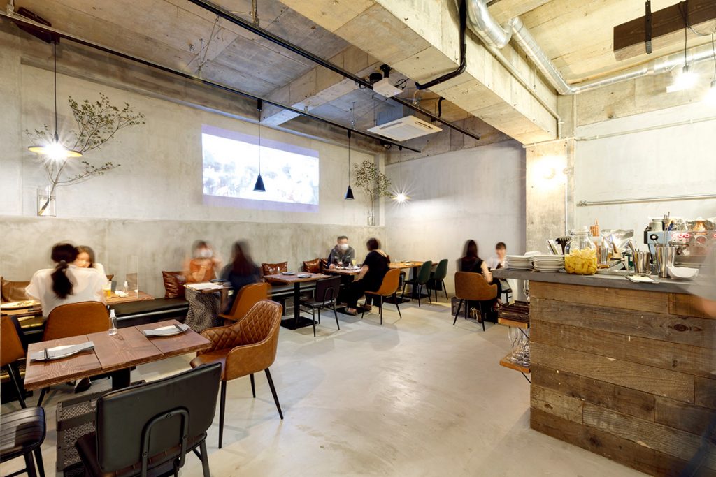 グレーとブラウンを基調とした店内は、モダンで落ち着きのある雰囲気です