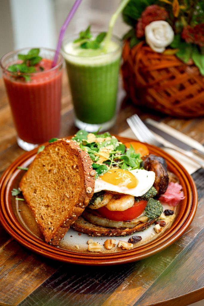 五ツ橋通り沿いに位置する、大きな窓が印象的なカフェ。フィットネスインストラクターのオーナーが営んでいます。オーガニックにこだわったフードは、旬の野菜で彩られ目でも舌でも楽しめますよ。人気は、4種類ある「サンドイッチプレート」。雑穀パンのサンドに10種類以上の野菜が添えられています。チアシード入りのスムージーと合わせれば、よりヘルシー!
