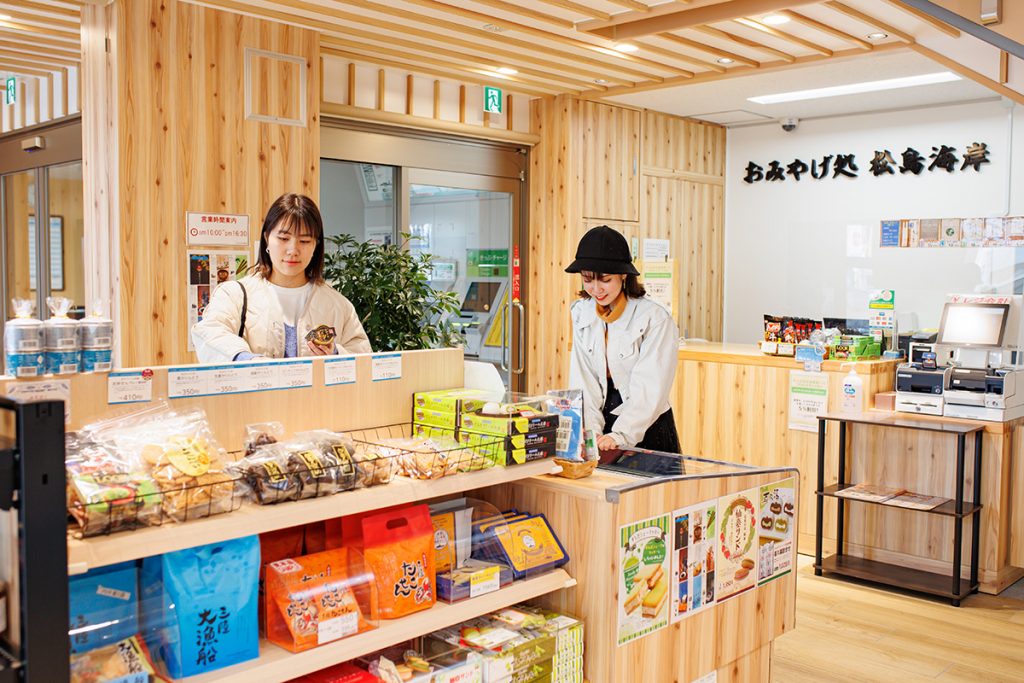 観光客はもちろん、地元の人にも気軽に利用してほしいおみやげ処。全国に誇れる特産品として認定された「松島ブランド」の商品も取り揃えています。(営業時間/10:00~16:30)