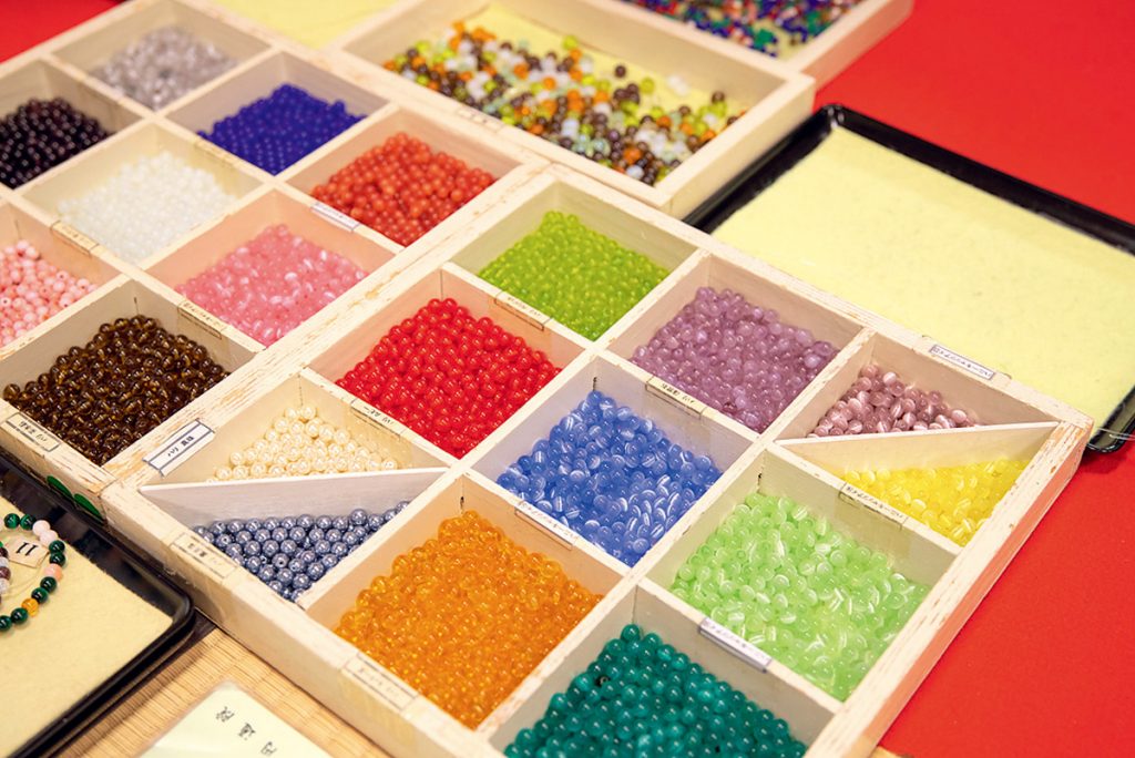 縁結び観音の参拝はもちろん、院内で体験できる天然石やガラスなどを素材にした数珠づくりも人気