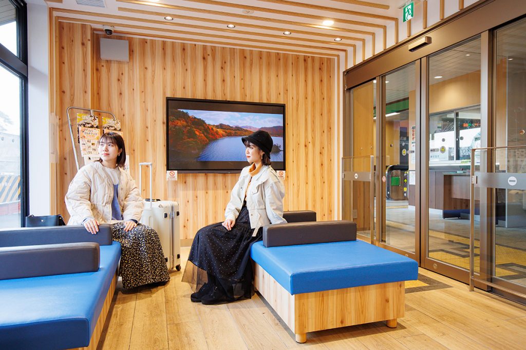 改札口の横には電車待ちや荷物の整理などにも便利な待合室が整備されています。