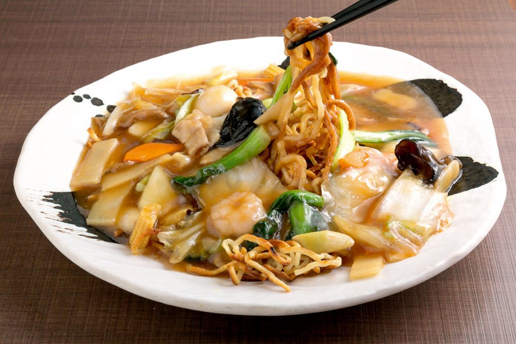 本場中国出身のシェフが腕を振う中華料理店です。人気は「五目あんかけ焼きそば」。存在感のある太麺が特長です。下茹でしてから焼くことで、表面はパリッと、中はもっちりを実現しています。具材はプリプリのエビや、キクラゲ、白菜、タケノコ、クワイ、チンゲン菜といったシャキシャキの野菜など。「五目」と言いつつ、実際は10種以上の具材が入っています。絶妙な火入れにプロの技を感じる、大満足のひと皿ですよ。