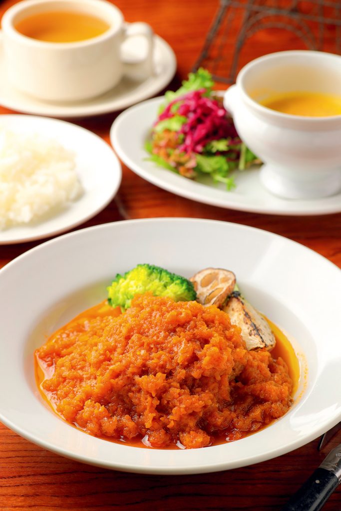 昼はカフェ、夜はシャンソンやジャズが楽しめるライブハウス。明るく気さくなママの人柄に惹かれて訪れる人も多いお店です。ランチメニューは、すべてママのお手製。ソースが選べるオムライスや肉感たっぷりのハンバーグ、日替りのメニューなどが楽しめます。カラフルなピクルス入りのサラダなど、どの料理にもさりげない心遣いが活きています。ハンドドリップコーヒーも楽しめますよ。