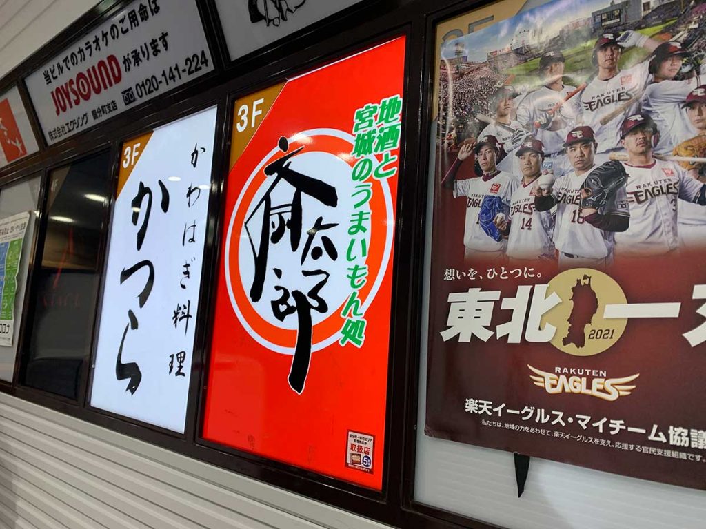 斎太郎があるのは、国分町は稲荷小路の「与五郎ビル」。地下鉄勾当台公園駅を降り、定禅寺通りを西側へ進むとすぐの場所にあります。