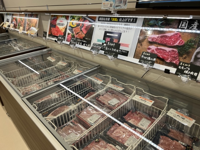 店内はこんな感じ。入口すぐのスペースには精肉や野菜もあります。