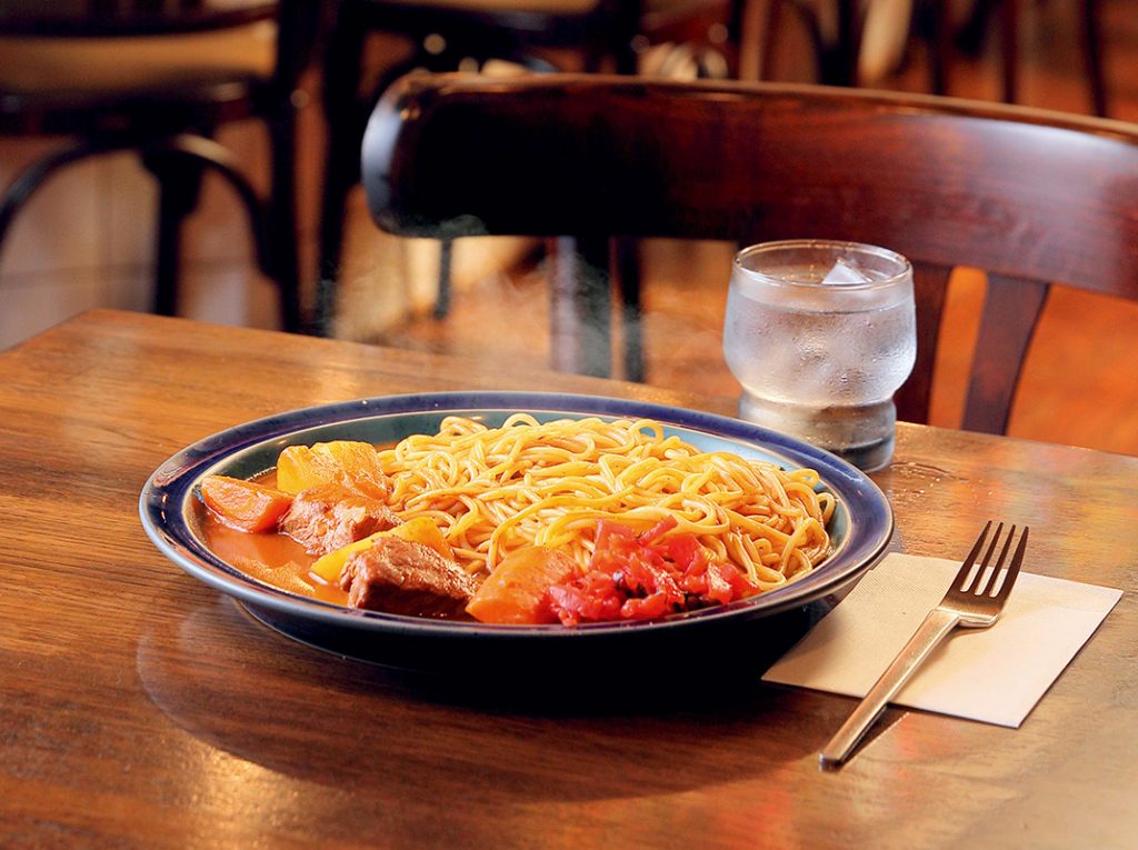 開店当初から“自分がおいしいと感じる味”を追求し続ける『タピオラ』。店自慢の「カレースパゲティー」は、カレーにパスタを合わせた珍しいひと皿です。カレーは豚肉に香辛料、タマネギ、チャツネやケチャップ、ルウを加えて3時間煮込み、一味唐辛子で辛みをプラスしたこだわりの味。もっちり麺を噛むほどに、じんわりとカレーの味わいが感じられますよ。