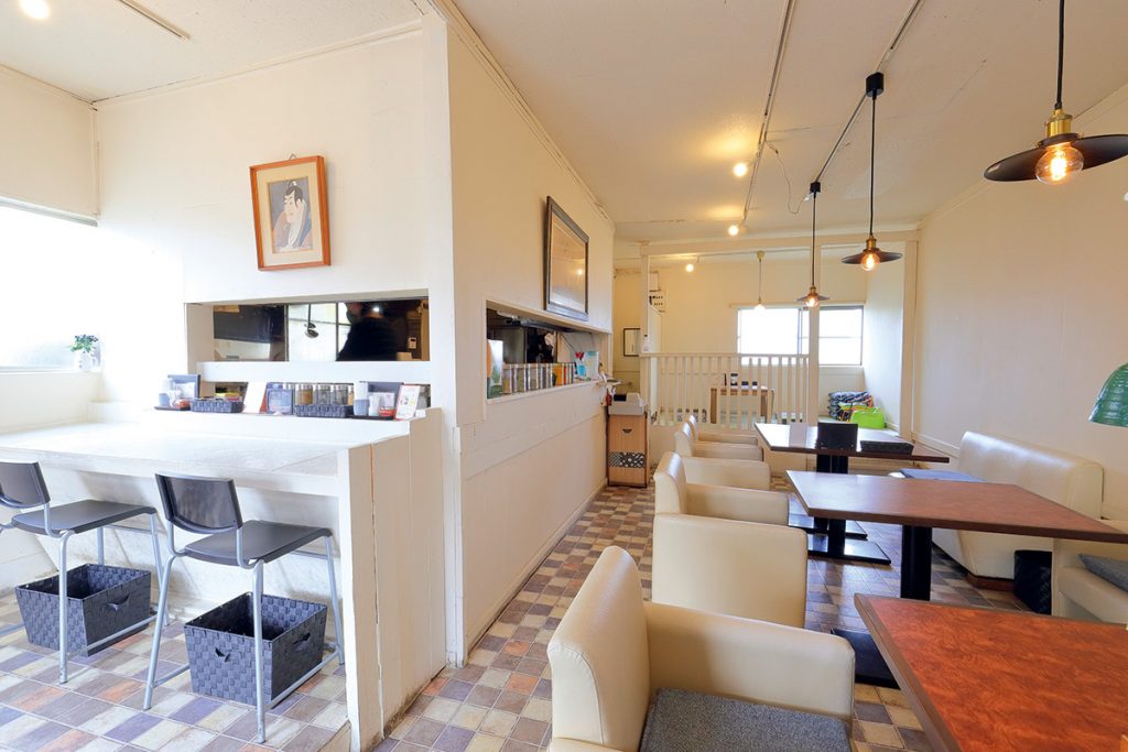装飾品に和のエッセンスが散りばめられた店内。奥には小上がりもあります